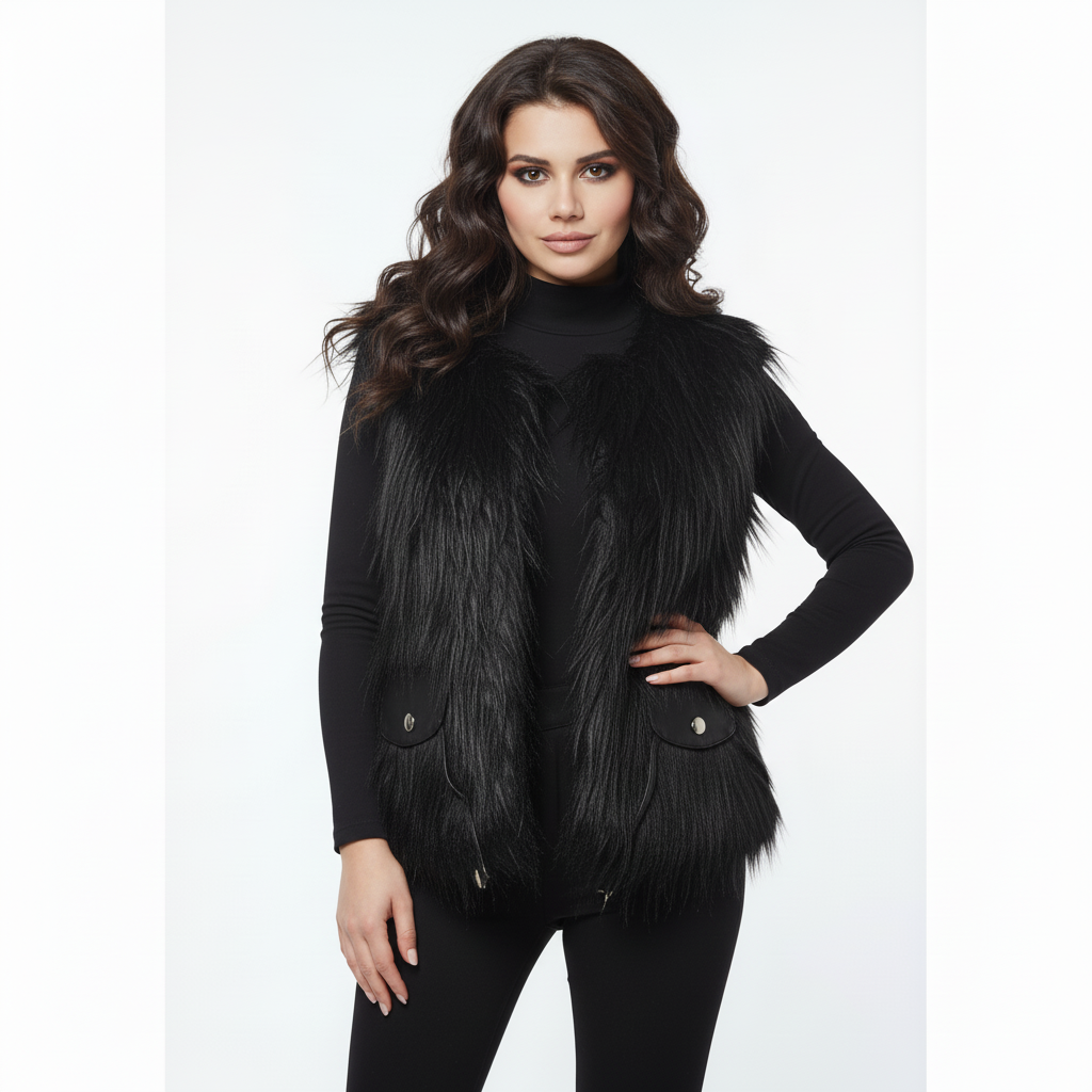 Black BILERN Faux Fur Vest