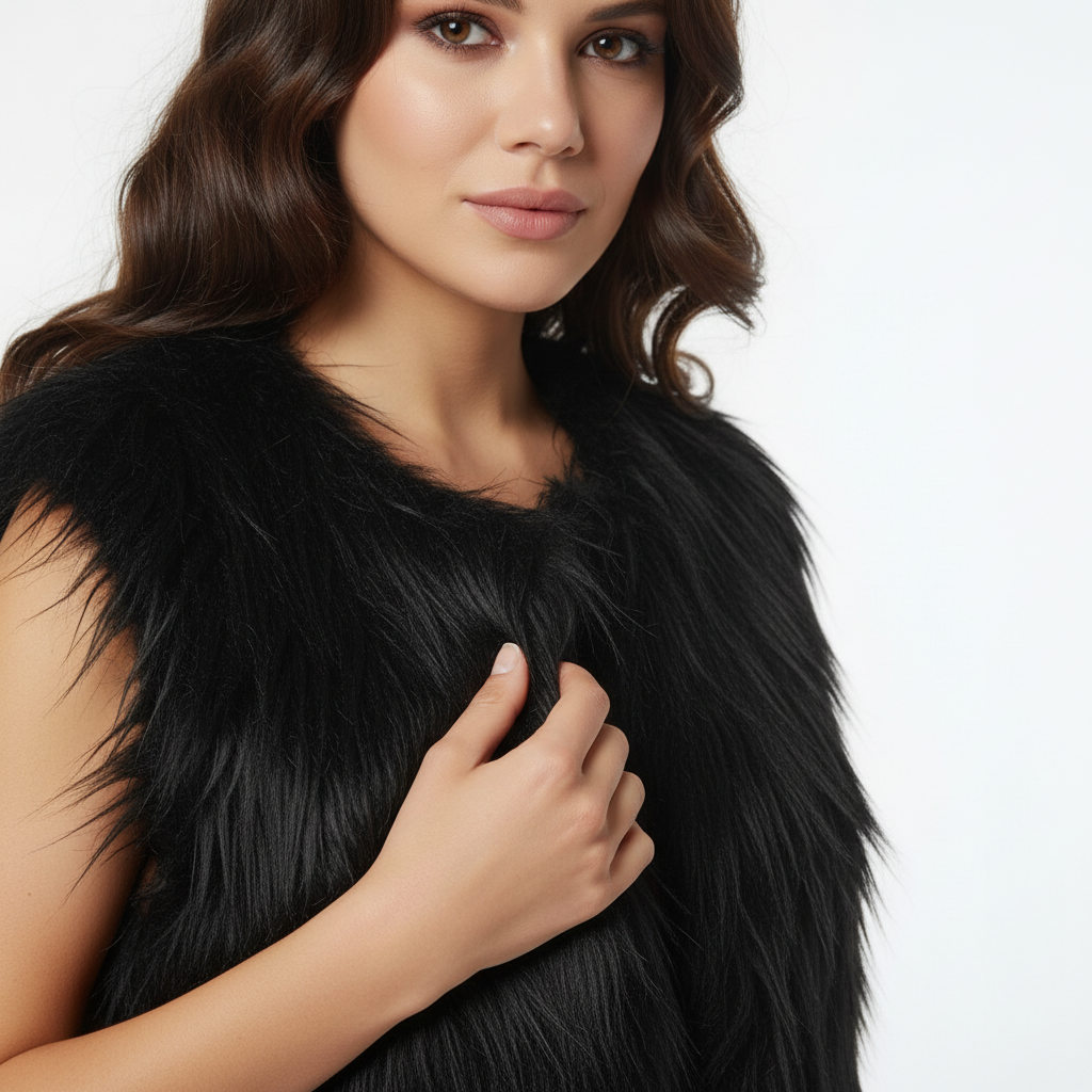 Elevate your winter wardrobe with the BILERN Faux Fur Vest. Designed for fashion-forward layering, this vest features a shaggy faux fur exterior, smooth lining, and functional flap pockets. Metallic drawstrings add a touch of streetwear flair. Ideal for casual outings, streetwear fits, or cozy layering. ✨ Key Features: ✅ Premium Faux Fur: High-pile shaggy texture for bold winter styling 🎯 Functional Design: Two flap pockets with secure button closures ✨ Streetwear Details: Metallic-tipped drawstrings add urban edge 👗 Versatile Fit: Relaxed silhouette for easy layering over hoodies or knits 🧼 Care: Dry clean or spot clean recommended 📐 Fit & Sizing: • Relaxed fit with natural drape • Model is 5'8" wearing size S/M