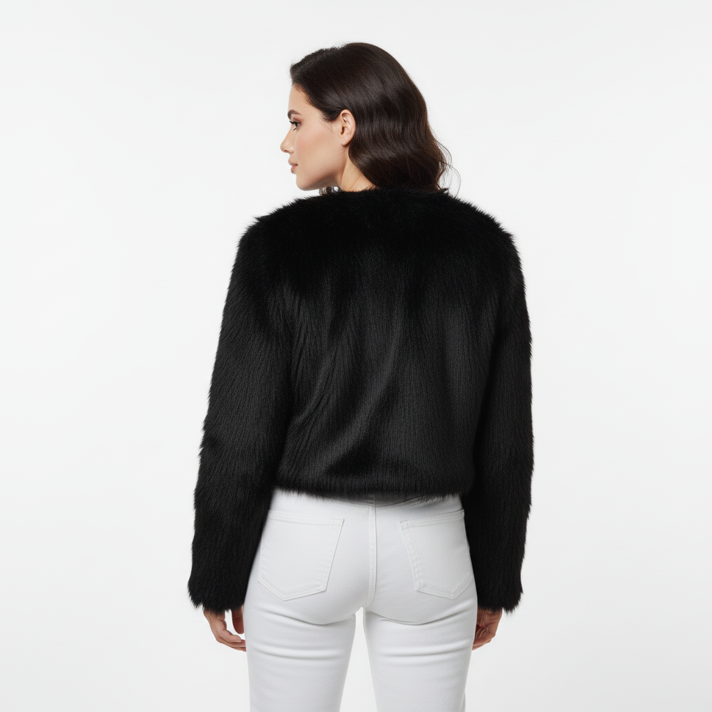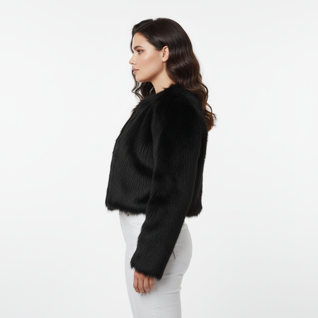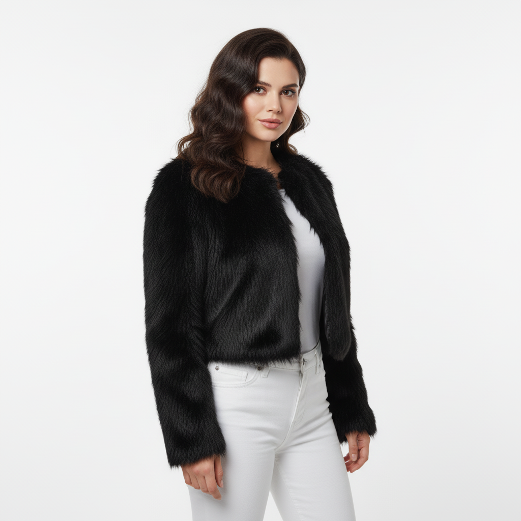 The Midnight Coil is your go-to for stealth luxury. This black faux fur jacket delivers high-impact texture with a sleek inner lining, cropped for a clean streetwear profile. Whether you're layering over graphic tees or pairing with wide-leg pants, it’s built to elevate your cold-weather fits. • Deep black faux fur with a voluminous feel • Cropped cut for streetwear precision • Satin inner lining for smooth comfort • Statement piece for night outs or daily wear