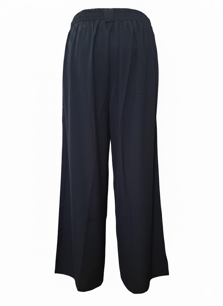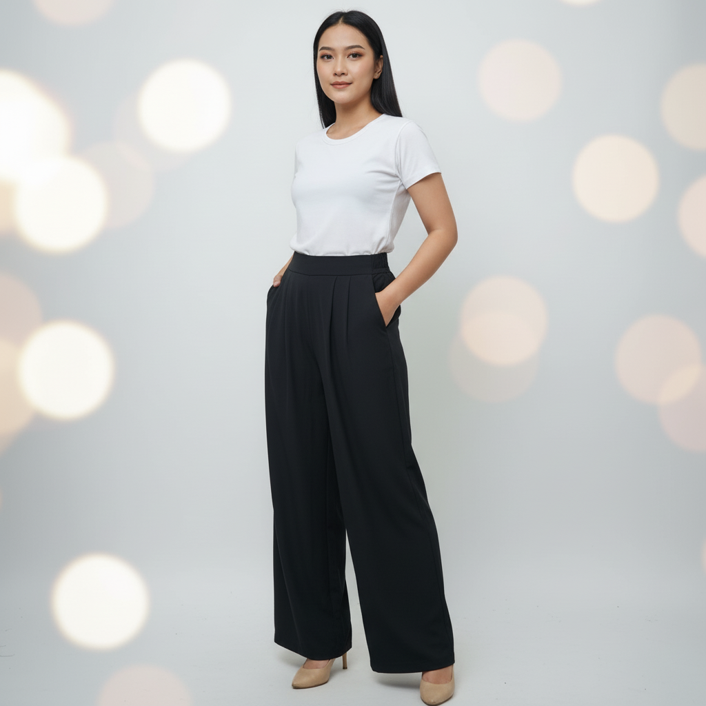 🖤 Product Description Step into effortless style with these Black Wide-Leg Pants, crafted for movement, comfort, and modern edge. The flowy silhouette and elastic waistband offer a relaxed fit that flatters every body type, while the minimalist design makes them a versatile staple—perfect for casual outings, creative workspaces, or elevated streetwear looks. 🧵 Key Product Information Overview: • Relaxed-fit wide-leg pants in a fluid black fabric, ideal for everyday wear or styled up for urban chic. Fabric/Material: • Outer: Lightweight cotton-blend • Lining: Unlined for breathable drape Design Details: • Elastic waistband for comfort and ease • Wide-leg cut for flow and movement • Full length (ankle-grazing) • Side pockets for functionality • Colour: Solid Black • Available Sizes: FREE SIZE S to XL • Fit: Relaxed, drapes naturally; fits true to size • Care Instructions: Machine wash cold or gentle hand wash; hang dry; do not bleach • Closure Type: Pull-on style • Occasion: Casual, Streetwear, Travel, Work-from-anywhere • Model Information: Model is 5’6” wearing FREE SIZE Additional Information: • Stretch level: Low • Lining: None