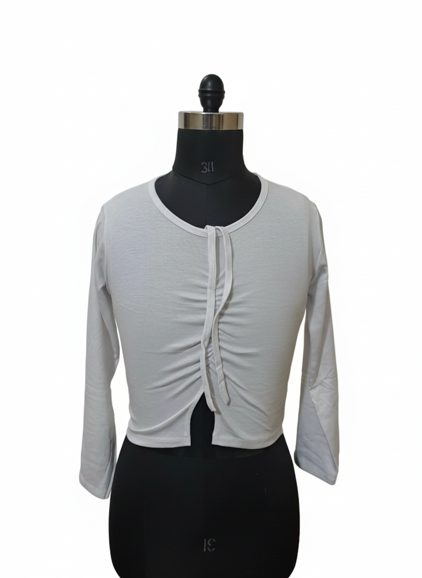 Designed to draw the eye and define the silhouette, the ZAKH “Centerfold” Crop is a soft statement with sharp intent. Made in a stretch-knit lilac fabric, this long-sleeve top features: • Center ruched detailing with a subtle front slit for contour and movement • Wide neckline for an open, flattering frame • Cropped length that pairs effortlessly with high-rise fits This piece is built for styling versatility—layer it under jackets, wear it solo, or contrast it with bold bottoms. Feminine, fitted, and ready to flex. Fit & Fabric: • Cropped, body-hugging fit • Soft stretch cotton blend • Machine wash cold, gentle cycle