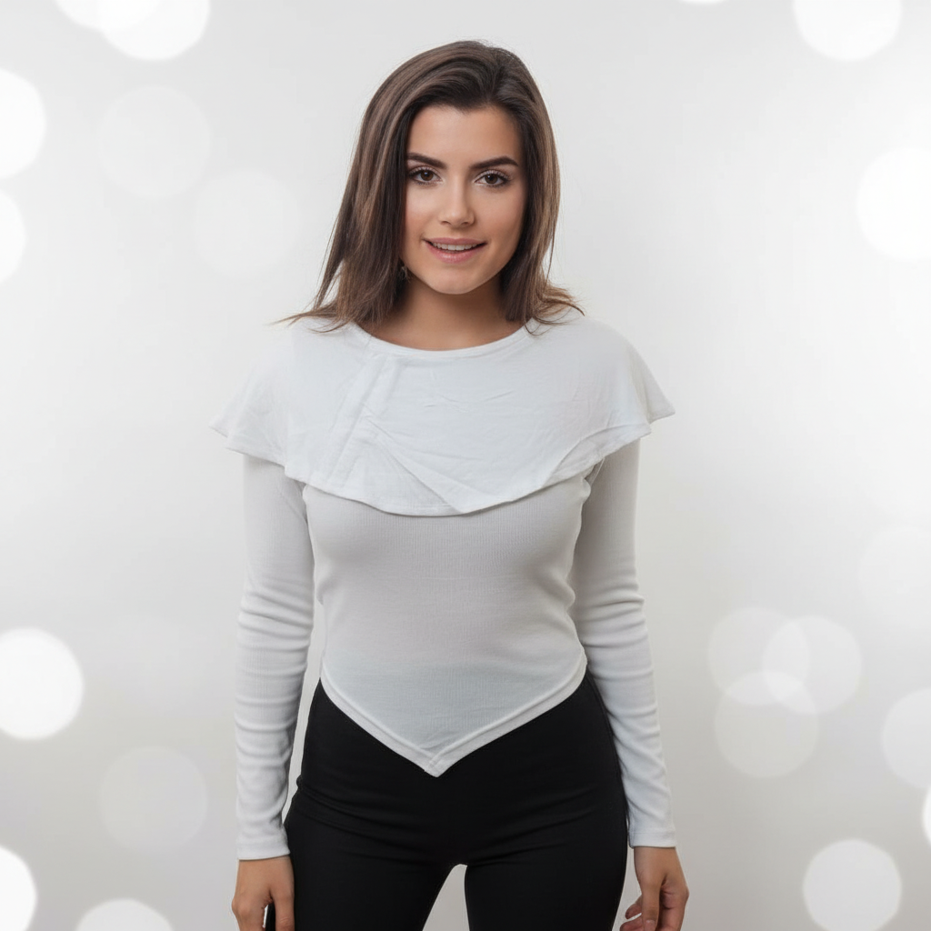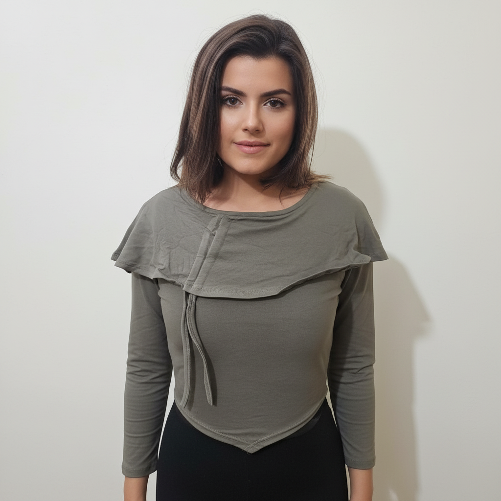 Romantic with a rebel twist. The ZAKH “Soft Armor” Crop is a sculptural statement piece that blends softness with strength. Designed in a stretch-knit rose pink, this long-sleeve top features: • Layered ruffle detailing across the shoulders and chest for dramatic volume • Wide neckline and asymmetric drawstring accent for playful adjustability • Pointed hemline that nods to bodysuit silhouettes—flattering, fierce, and ready to style This piece is made for those who lead with emotion and edge. Pair it with cargos, pleated skirts, or denim for a look that’s equal parts delicate and defiant. Fit & Fabric: • Cropped, sculpted fit • Soft stretch cotton blend • Machine wash cold, reshape while damp