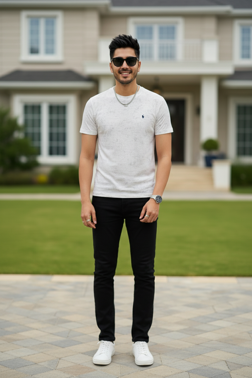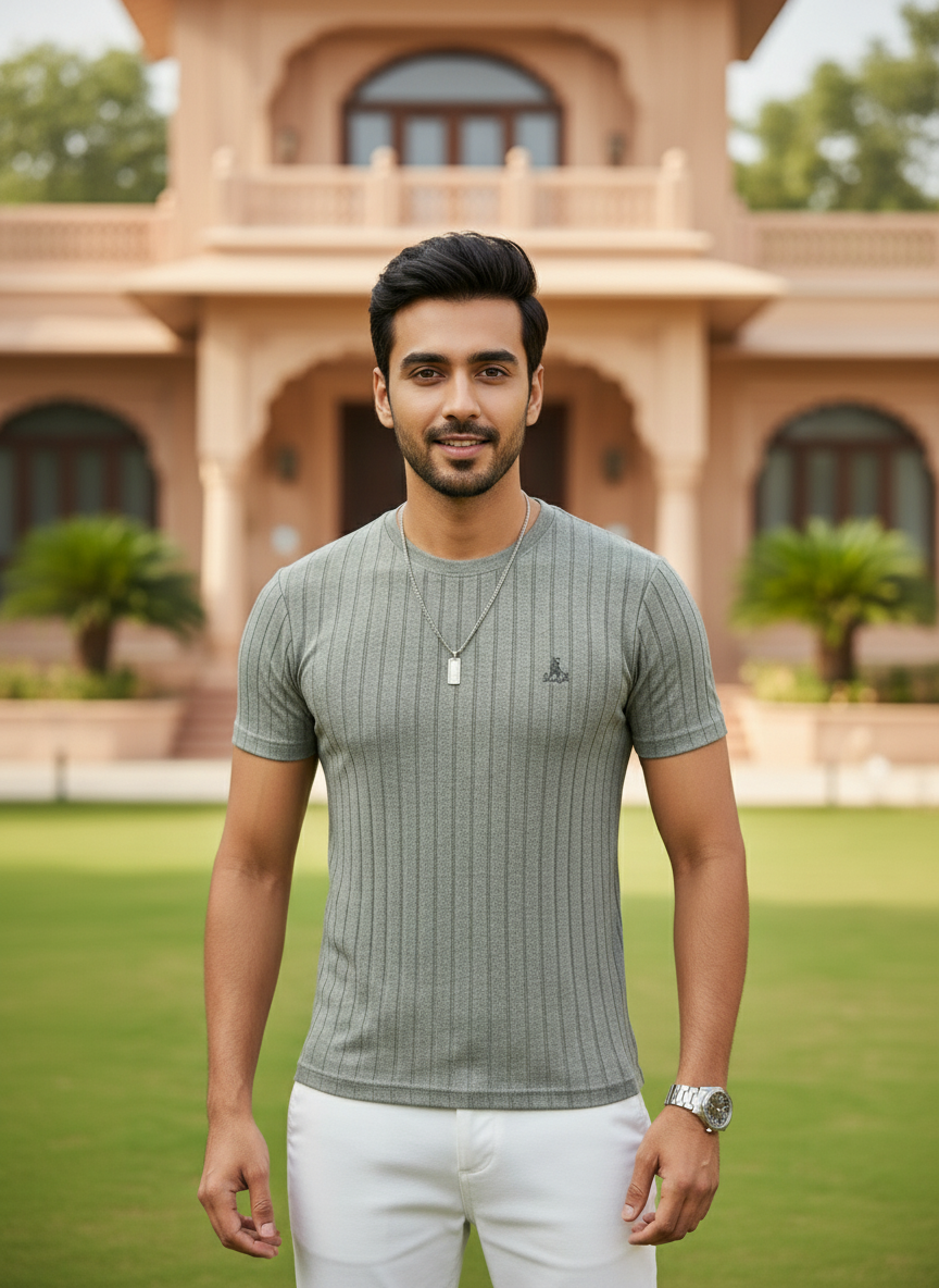 Elevate your essentials with our Ribbed Knit T-Shirt Collection, designed for the man who values style and a tailored fit. These short-sleeve tees feature a premium stretch fabric woven into a distinctive vertical ribbed texture that provides a sleek, form-fitting silhouette and excellent comfort. Key Features: Style: Short Sleeve T-Shirt Fit: Ultra-Slim Fit / Tailored Fabric: Soft, High-Stretch Ribbed Knit Design Detail: Vertical ribbed texture Occasion: Smart Casual, Everyday Elevated Materials: (Cotton/Spandex Blend for stretch and shape retention) Pattern/Texture: Vertical Ribbed Knit Neckline: Crew Neck Sleeve Length: Short Sleeve Fit: Contoured Slim Fit (Recommend sizing up if between sizes) Colours Available: Speckled White/Grey, Olive Green, Mocha Brown Care: Machine wash cold, gentle cycle, lay flat to dry. Marketed By - ZAKH eCommerce Pvt Ltd
