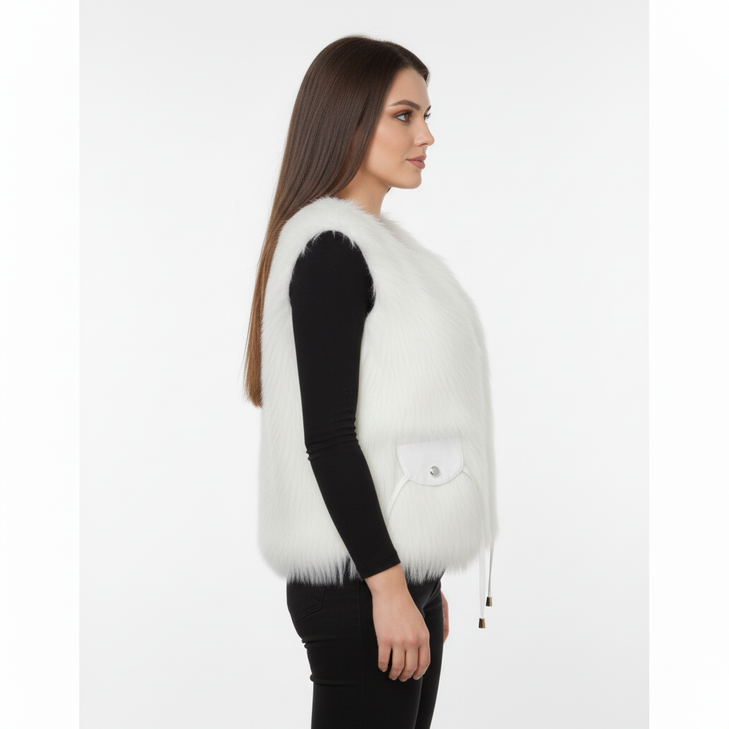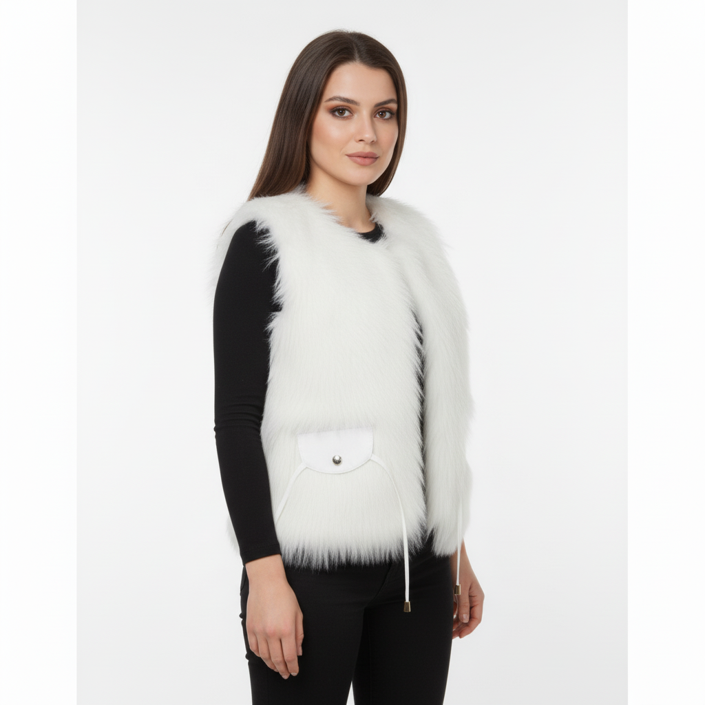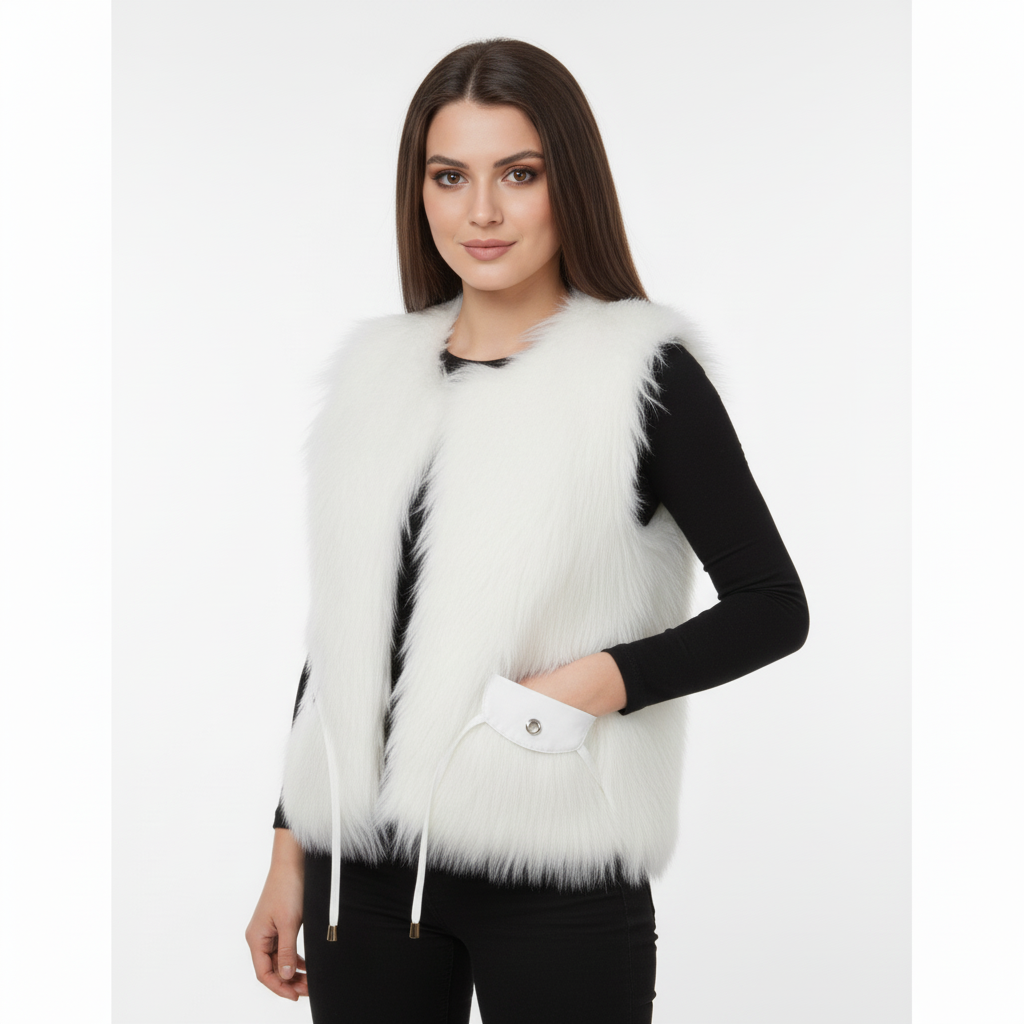 Elevate your winter wardrobe with the BILERN Faux Fur Vest. Designed for fashion-forward layering, this vest features a shaggy faux fur exterior, smooth lining, and functional flap pockets. Metallic drawstrings add a touch of streetwear flair. Ideal for casual outings, streetwear fits, or cozy layering. ✨ Key Features: ✅ Premium Faux Fur: High-pile shaggy texture for bold winter styling 🎯 Functional Design: Two flap pockets with secure button closures ✨ Streetwear Details: Metallic-tipped drawstrings add urban edge 👗 Versatile Fit: Relaxed silhouette for easy layering over hoodies or knits 🧼 Care: Dry clean or spot clean recommended 📐 Fit & Sizing: • Relaxed fit with natural drape • Model is 5'8" wearing size S/M