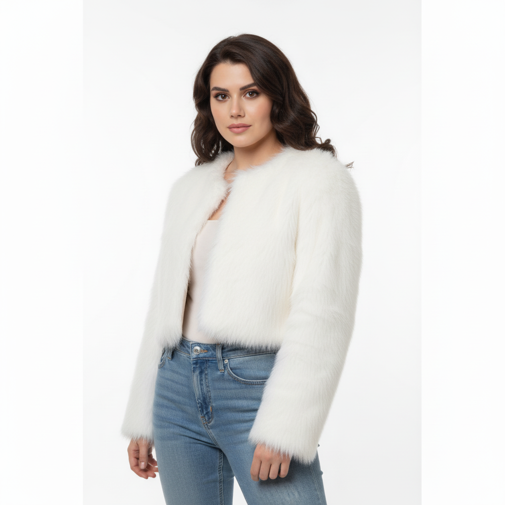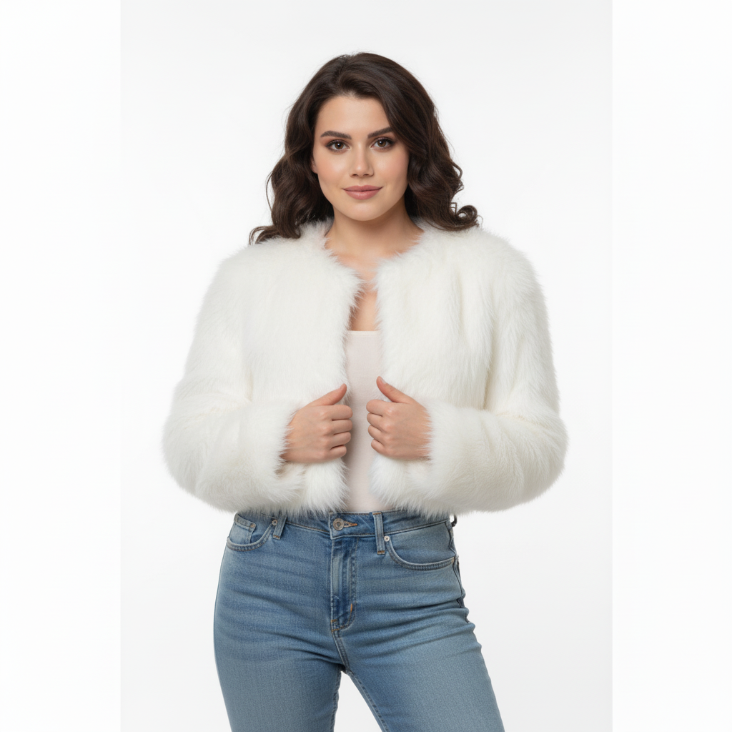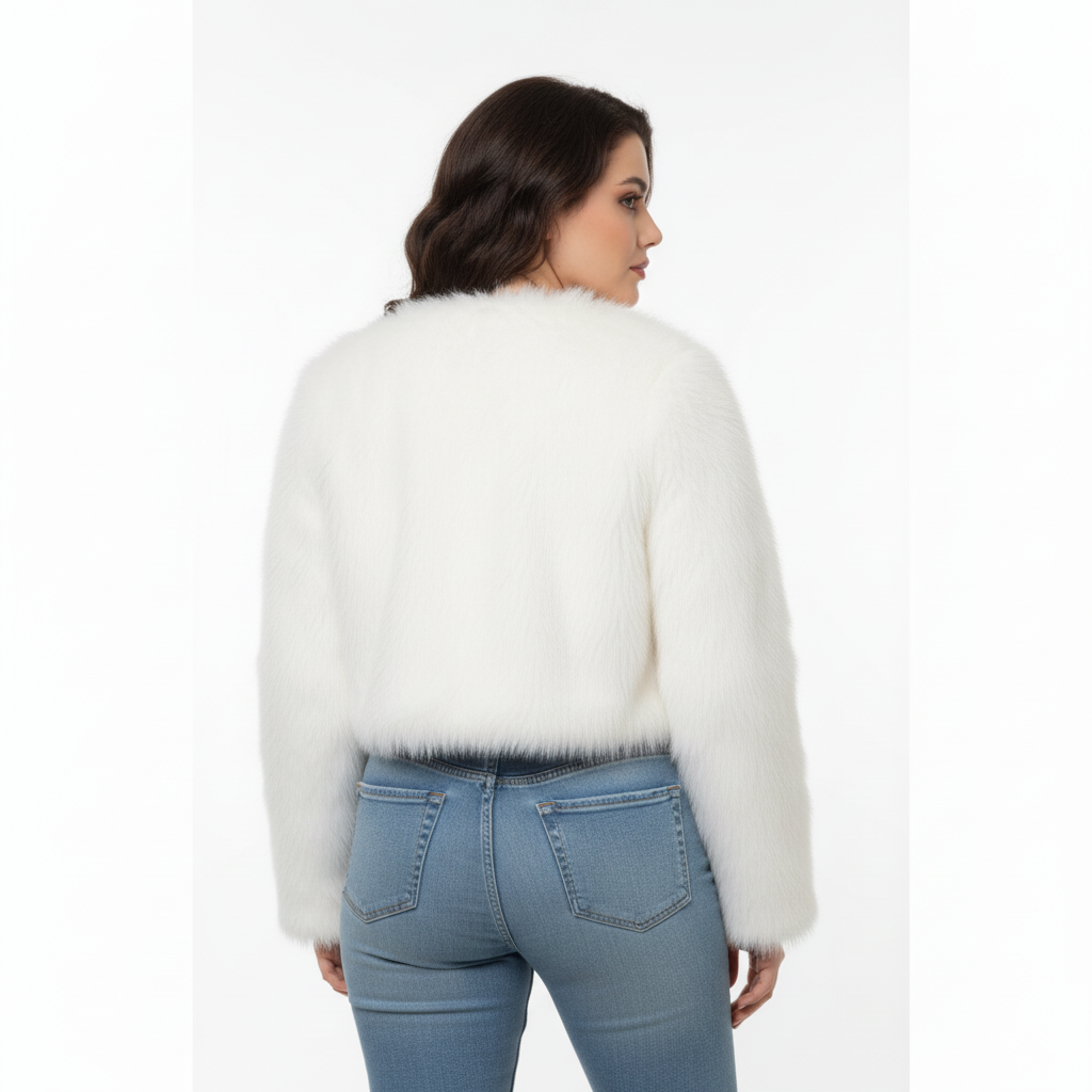 Turn heads in the Snow Static—a white faux fur jacket that channels icy elegance with street-ready swagger. Its cropped cut and fluffy texture make it a standout piece for winter layering, while the smooth inner lining keeps you cozy without the bulk. Perfect for monochrome fits or contrast-heavy styling. • Ultra-soft faux fur with a clean white finish • Cropped length for a modern silhouette • Lightweight warmth with luxe vibes • Ideal for winter drops, parties, or everyday flex