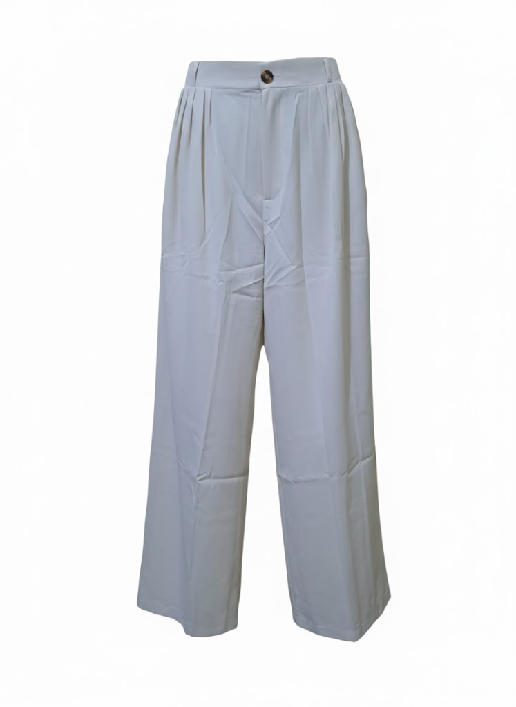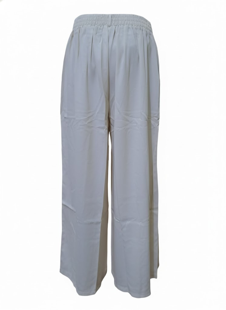 🤍 Product Description Float through your day in these White Wide-Leg Trousers —crafted for comfort, movement, and clean minimalism. The wide-leg silhouette and elastic waistband offer effortless wearability, while the lightweight fabric makes them perfect for warm weather, travel, or off-duty styling. 🧵 Key Product Information Overview: • Loose-fit palazzo pants in crisp white, ideal for casual wear, lounging, or elevated basics. Fabric/Material: • Outer: Lightweight cotton-blend • Lining: Unlined for breathability Design Details: • Elastic waistband for comfort • Wide-leg cut for fluid drape • Full length (floor-grazing) • No visible pockets or embellishments • Colour: White Available Sizes: FREE SIZE S to XL Fit: Relaxed, true to size Care Instructions: Machine wash cold or gentle hand wash; hang dry; do not bleach Closure Type: Pull-on style Occasion: Casual, Lounge, Travel, Streetwear Model Information: Model is 5’6” wearing FREE SIZE Additional Information: • Stretch level: Low • Lining: None